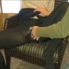 そして洋子は自分の足を広げ、男性のあぐらの太股の上に乗せました。